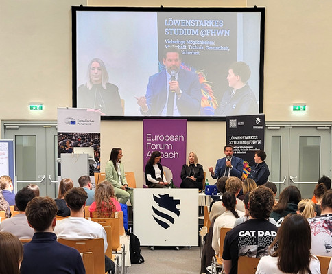 Das Europaparlament ermöglichte gemeinsam mit Wiener Neustädter Bildungseinrichtungen am City Campus eine breite Auseinandersetzung mit Themen wie Demokratie, künstliche Intelligenz, Journalismus und Medien. Zu diesen Schwerpunkten erarbeiteten Schülerinnen und Schüler sowie Studierende in Arbeitsgruppen teils im Gespräch mit Mandl Sichtweisen und Inhalte.
